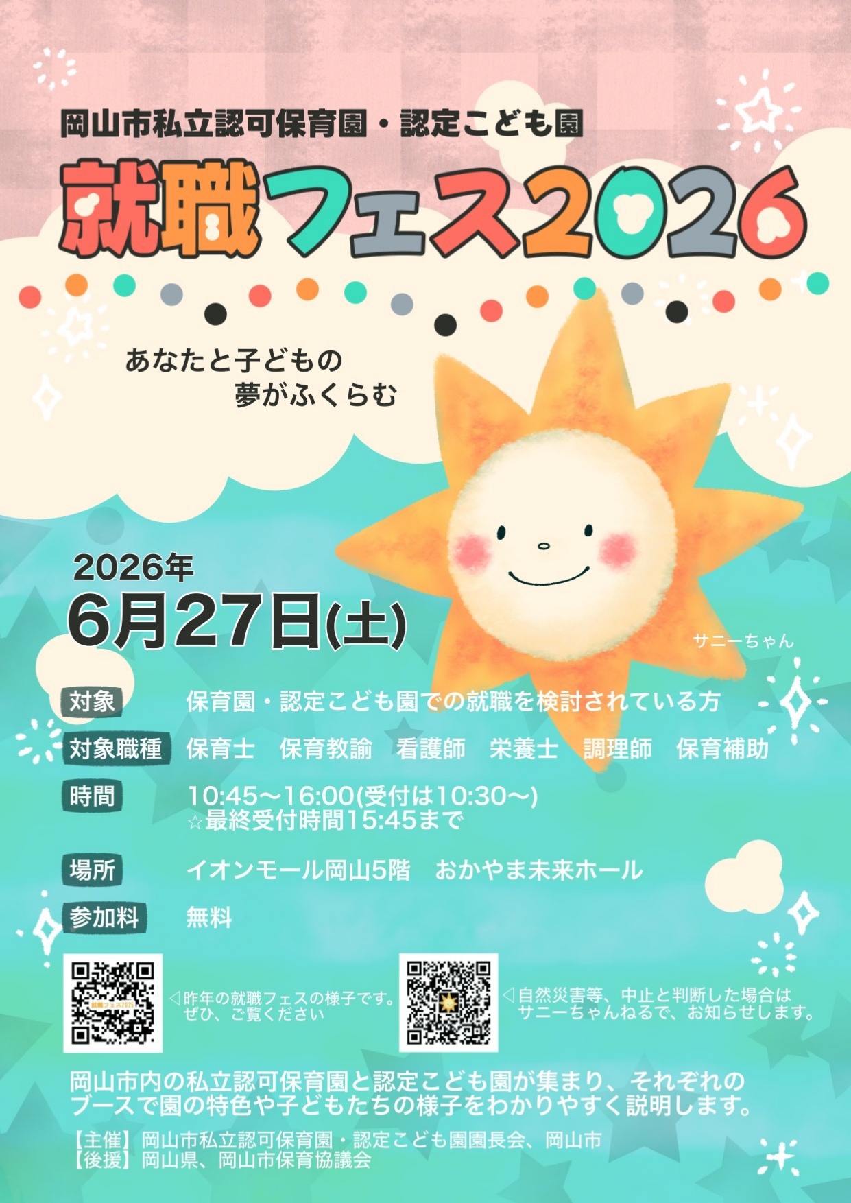2026年6月27日(土)にイオンモール岡山5階おかやま未来ホールにて、『就職フェス2026』を開催いたします。